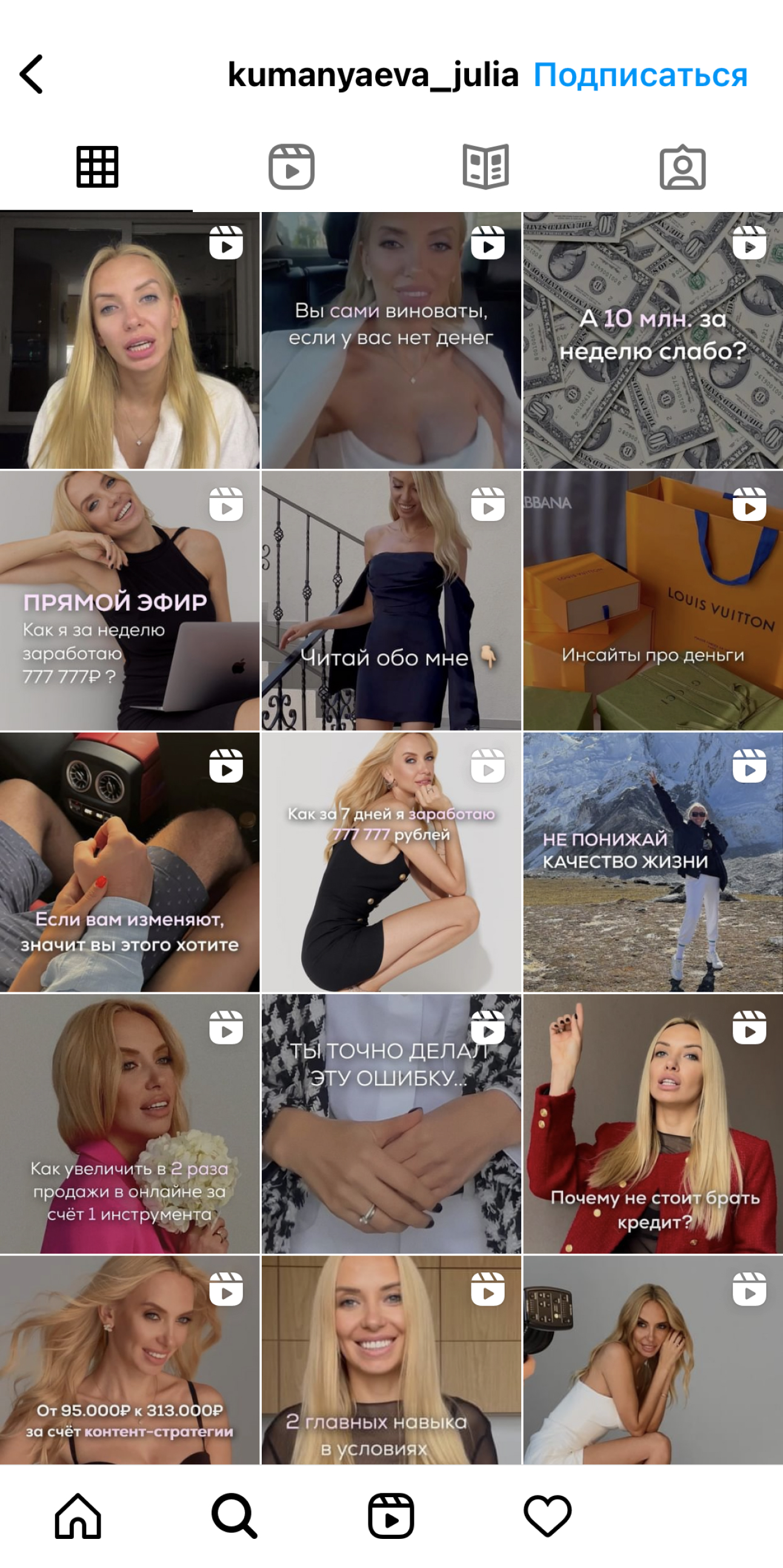 Систематизация контента и наполнение профиля Юлии Куманяевой